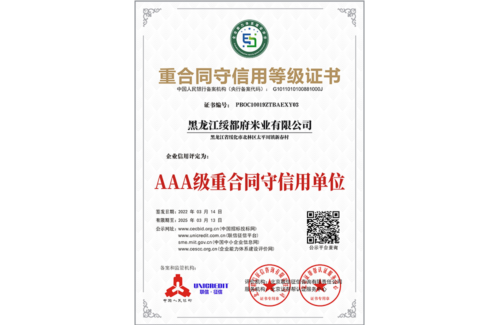 資質榮譽 服務廣大客戶 您現在的位置:網站首頁 > 走進我們 > 資質榮譽 公司簡介 領導致辭 企業文化 資質榮譽 注重產品質量 推行品牌戰略 綏都府米業:AAA級信用企業 中國誠信企業家:趙薦茗 AAA級誠信經營示范單位 AAA級重合同守信用單位 AAA級重服務守信用單位 AAA級質量服務誠信單位 共9條記錄 當前為第2頁/共2頁上一頁12下一頁